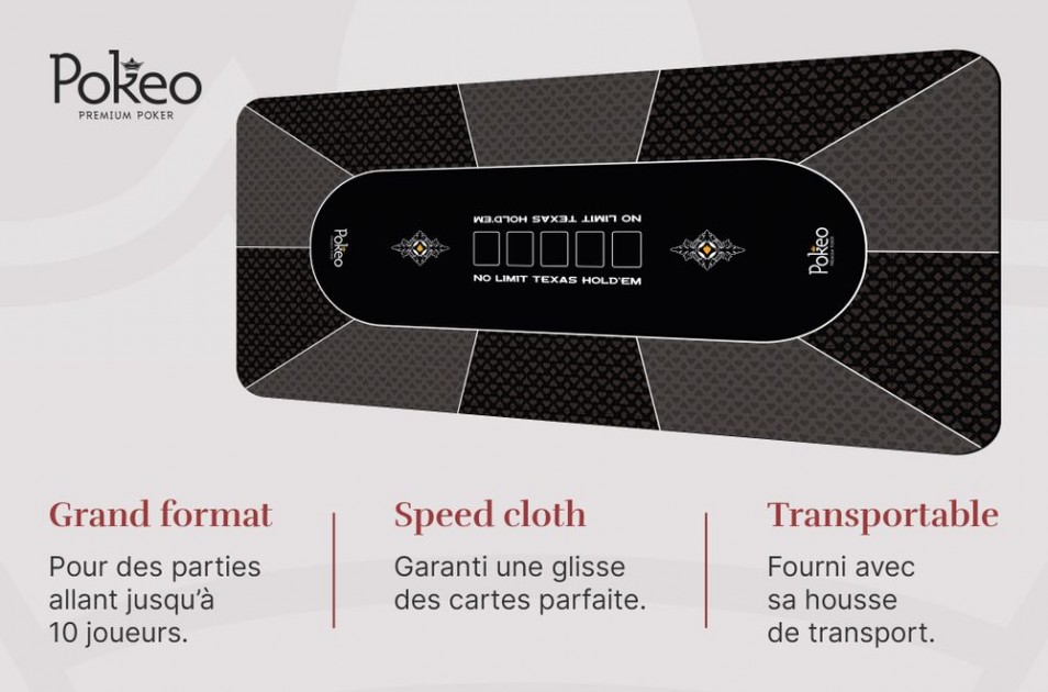 ♠️ NOUVEAU STYLE : Envie d'un tapis neuf mais lassé du tapis classique de Poker ? Pokeo a la solution pour vous ! Découvrez notre tapis Pokeo Deluxe et son nouveau motif ! Allure Moderne et couleurs éclatantes, un combo idéal pour un tapis de qualité !