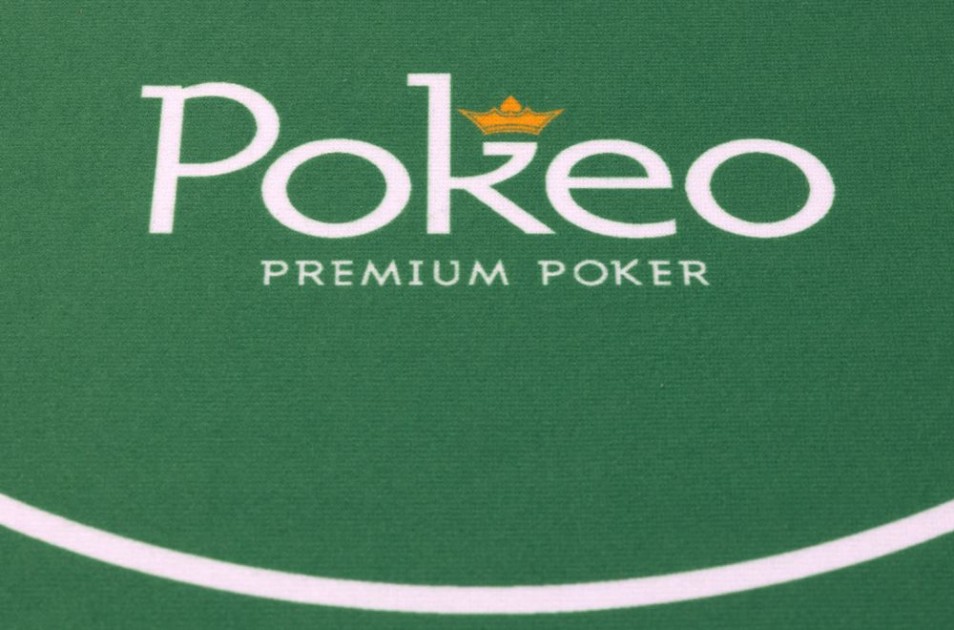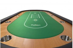 Table de poker 10 joueurs avec repose-coudes en simili-cuir noir, racetrack en bois mélaminé et tapis printé en microfibre vert.